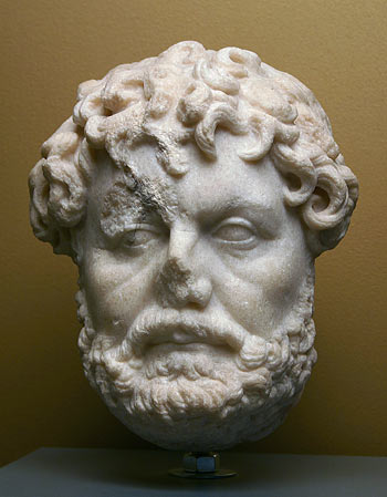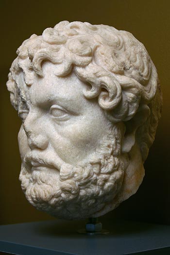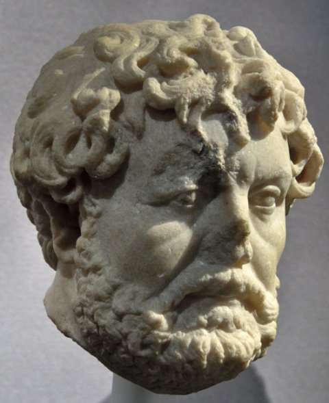 - Porträtkopf eines älteren Mannes mit gelocktem Haar und kurzem Vollbart