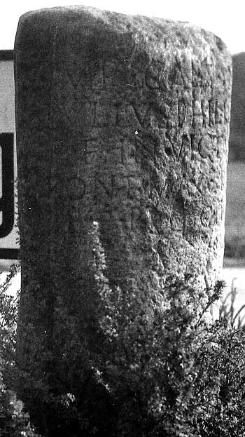 - Imp(erator) Caes(ar) M(arcus) / Iulius Philippus / P(ius) F(elix) Invictus Aug(ustus) / pont(ifex) max(imus) trib(unicia) pot(estate) / p(ater) p(atriae) proco(n)s(ul) / a Vir(uno) m(ilia) p(assuum) / XV