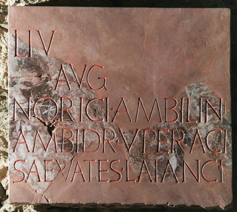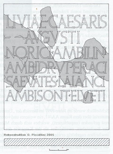 - Liv[i]ae C[aesaris] / Augu[sti ux(ori)] / Norici A[m]bilini / Ambidr(avi) Uperaci / Saev[ates] Laia[n]ci / [A]m[bisont(es) (H)e]lv[eti(i)]