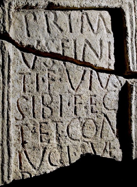 - Di(s) Ma(nibus) / Prim/us Fini/ti f(ilius) vi(v)us / sibi feci/t et con/iugi su(a)e / p[osuit]