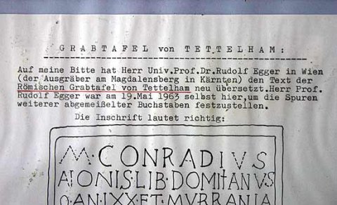 - CIL 03, 05599; Vollmer, Inscriptiones Baivariae Romanae 44; Illpron 1553; Bayr. Vorgeschichtsblätter 29, 1964, 178; A. Obermayr, Römersteine zwischen Inn und Salzach 1974, 66