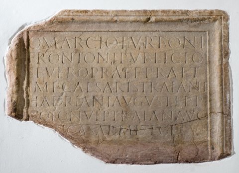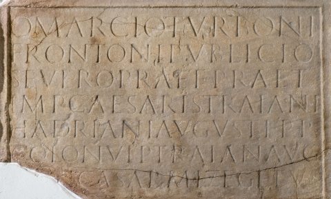 - Q(uinto) Marcio Turboni / Frontoni Publicio / Severo praef(ecto) praet(orio) / Imp(eratoris) Caesaris Traiani / Hadriani Augusti p(atris) p(atriae) / colon(ia) Ulp(ia) Traian(a) Aug(usta) / [Da]cica Sarmizegetus(a)