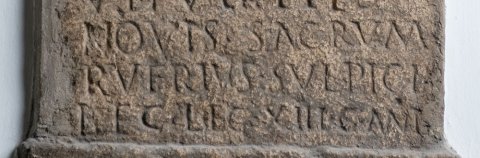 - Pro salut(e) / domini / nostri sa/nctissimi / Antonini / Pii Augusti / Nymphis / novis sacrum / Rufrius Sulpicia(nus) / leg(atus) leg(ionis) XIII g(eminae) Ant(oninianae)