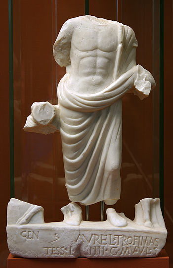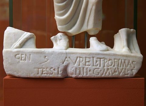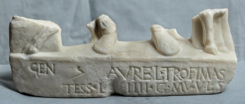- Gen(io) |(centuriae) Aurel(ius) Trofimas / tess(erarius) l(egionis) [X]IIII G(eminae) M(artiae) V(ictricis) v(otum) l(ibens) s(olvit)