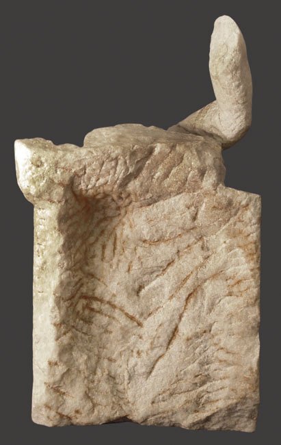 - Mythische Figur : sitzender Jupiter mit Sandalen, Mantel um Unterkörper und Beine, in der Linken Blitzbündel.