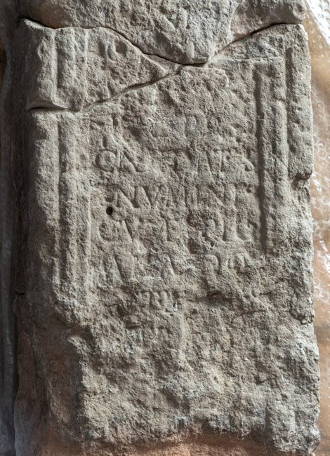 - [I(ovi) O(ptimo) M(aximo)] / Dolich(eno) / pro sal(ute) / [[[Imp(eratoris) Caes(aris)] C(ai)]] / [[[Iul(i) Veri M]ax]]/[[[imini P(ii)] F(elicis)]] / [[[Invic(ti) Au]g(usti)]] / [--- Ulpi]us / Amandianus / mil(es) leg(ionis) / XIIII g(eminae) / librari[u]s / numeri s(uprascripti) / cus(tos) arm(orum) / signif[er] / optio / o[cta]v[i] / pr(incipis) pr(ioris) / candidatus / numini / cum U[l]pio / Amando / [ve]t(erano) le[g(ionis)] s(upra) s(criptae) / p[osuit?]