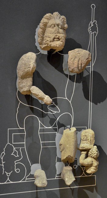 - 9 Fragmente (Kopf, rechter Arm, linke Schulter, Füße, linker Unterschenkel, Stützfigur vom Thron)