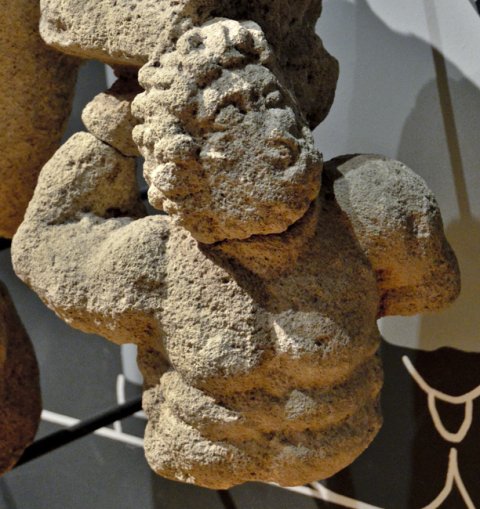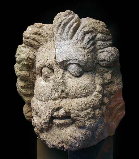 - Mythische Figur : überlebensgroße Statue des thronenden Jupiter mit schlangenbeinigen Giganten als Stützfiguren des Thrones.