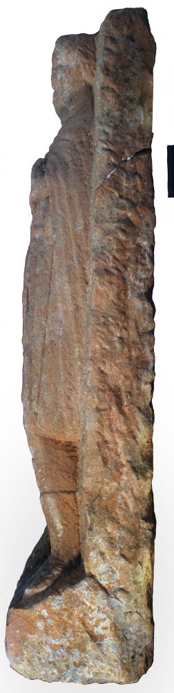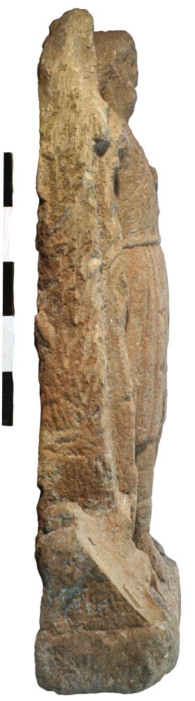 - Mythische Figur (Silvanus) : stehender bärtiger Mann in kurzer Tunica mit Gürtel, Mantel und Stiefeln, in der Linken Pedum, in der erhobenen Rechten Lanze, neben dem rechten Fuß Tier (Wildschwein ?).