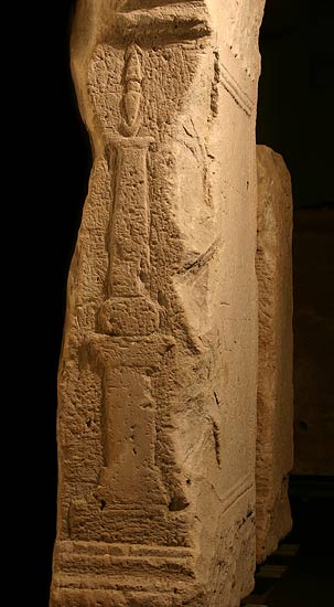 - Auf der linken Nebenseite Altar mit Säule und Blitzbündel, auf der rechten Füllhörner.