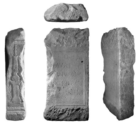 - [I(ovi)] O(ptimo) M(aximo) / T(itus) Aurel(ius) Fir/minus |(centurio) leg(ionis) / XXII Pr(imigeniae) p(iae) f(idelis) / [v(otum)] s(olvit) l(ibens) l(aetus) m(erito)