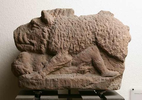6904 Eber über liegendem Mann, Bekrönung eines Grabmals