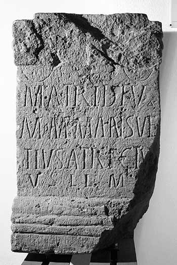 - Matri deu/m M(arcus) Mansue/tius Atrectu(s) / v(otum) s(olvit) l(ibens) l(aetus) m(erito)