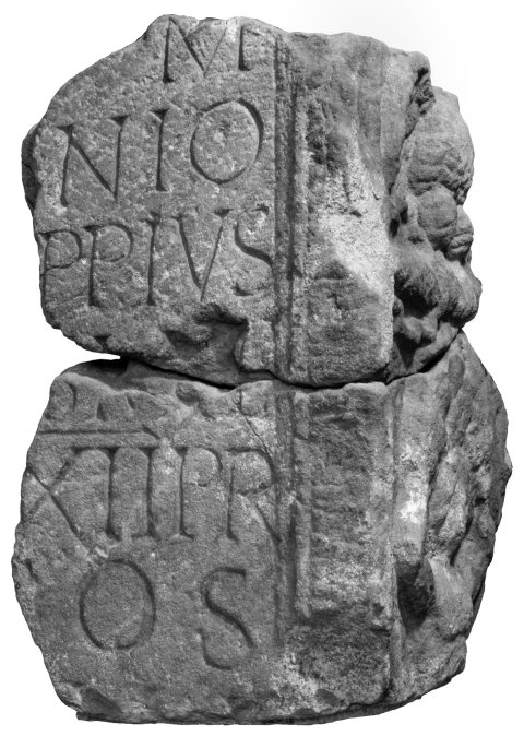 - [I(ovi) O(ptimo)] M(aximo) / [et Ge]nio / [loc(i) ---]ppius / [---]s mil(es) / [leg(ionis) X]XII Pr(imigeniae) / [p(iae) f(idelis) b(ene)f(iciarius)] co(n)s(ularis) / [v(otum) s(olvit) l(ibens)] l(aetus) m(erito)