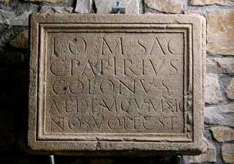 - I(ovi) o(ptimo) m(aximo) sac(rum) / C(aius) Papirius / Colonus / aedem cum sig/no suo pec(unia) s(ua) fe(cit)