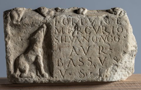 - Fortun(a)e / Mercurio / Silvano Augg(ustis) / Aur(elius) / Bassus / v(otum) s(olvit) l(ibens) [m(erito) ]