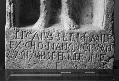 - Licaius Seri f(ilius) miles / ex c(o)ho(rte) I Pan(n)onioru(m) an(norum) / XXX sti(pendiorum) XVI h(ic) s(itus) e(st) fra/ter op(us) p(i)e(tatem) / f(ecit)