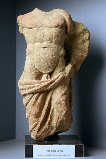 - Mythische Figur (Genius) : stehender Jüngling, Mantel um Beine und linken Arm.