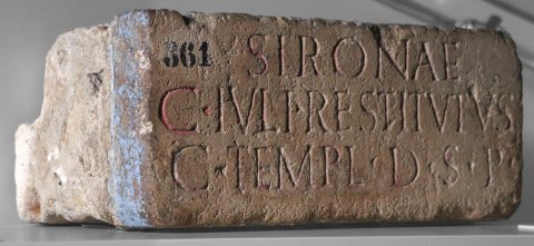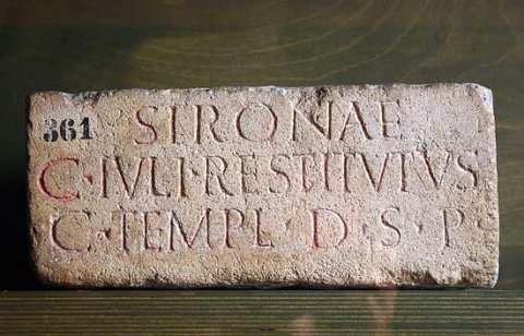 - Sironae / C(aius) Iuli(us) Restitutus / c(urator) templ(i) / d(e) s(uo) p(osuit)