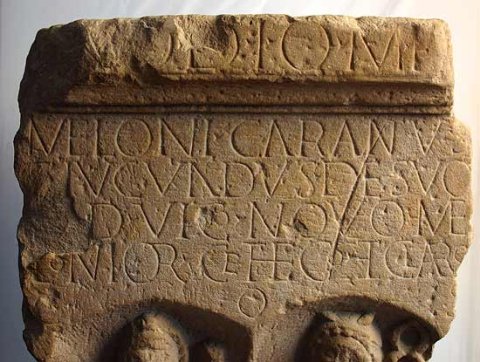 - [In h(onorem)] d(omus) d(ivinae) I(ovi) O(ptimo) M(aximo) e[t I(unoni) R(eginae)] // Meloni(i) Carantus / et Iucundus de suo / [d(ono)] d(ederunt) vico novo Me/lonior(um) Cethego et Claro / co(n)s(ulibus)