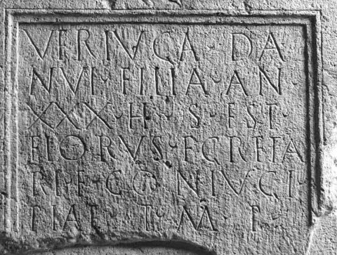 - Veriuga Da/nui filia an(norum) / XXX h(ic) s(ita) est / Florus Egreta/ri f(ilius) coniugi / piae t(itulum) m(emoriae) p(osuit)