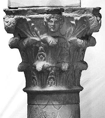 - Säule mit korinthischem Kapitell, zwischen den Voluten Büsten (Jahreszeiten ?).