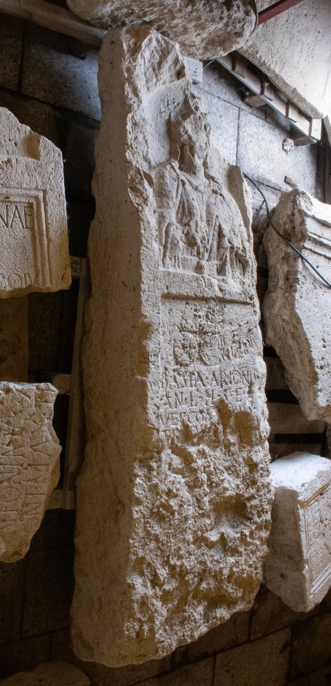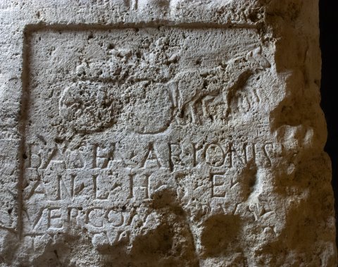 - Basia Arionis [f(ilia) ] / an(norum) L h(ic) s(ita) e(st) [---](?) / Vercom[b]erus I(?) / Tattuni[s f(ilius) ---]V(?) / [---