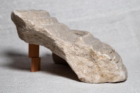 rundes, deckelartiges Fragement mit umlaufender Profilierung. Außen Lorbeerkranz.
