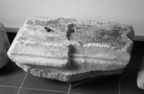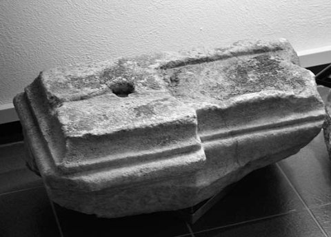 - hinten abgebr., in der Oberseite Dübelloch mit Gusskanal
