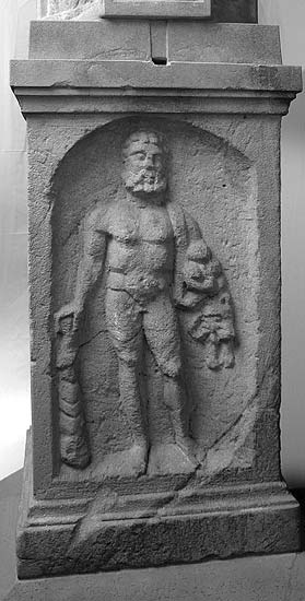 Auf der Rückseite nackter bärtiger Hercules mit Löwenfell und Keule. - Inschrift
