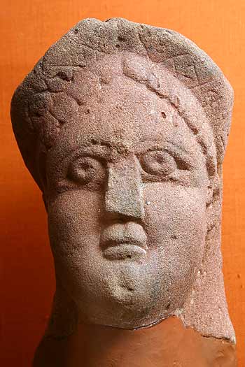 - Mythische Figur (Juno ?) : lebensgroßer Kopf mit Diadem mit Ritzornament.