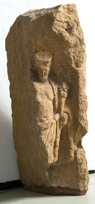 7334 Basisfragment mit Inschrift und Reliefs