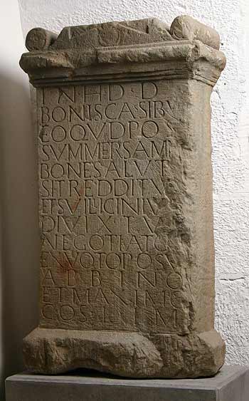 Den Boni Casus (od. Casses) hat der Kaufmann Lucius Licinius Divixtus auf Grund eines Gelübdes diesen Altar gesetzt, weil er nach einem Schiffsuntergang wieder zu guter Gesundheit und den Seinen zurückgekehrt ist.