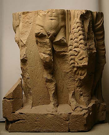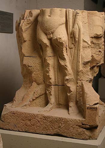 Mythische Figuren : Quaderförmiger Block, dargestellte Gottheiten nur von der Brust abwärts erhalten.