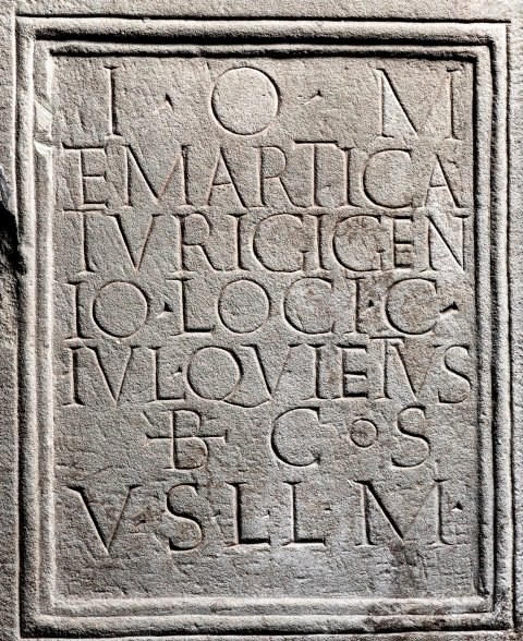 - I(ovi) O(ptimo) M(aximo) / et Marti Ca/turigi Gen/io loci C(aius) / Iul(ius) Quietus / b(ene)f(iciarius) co(n)s(ularis) / v(otum) s(olvit) l(ibens) l(aetus) m(erito)