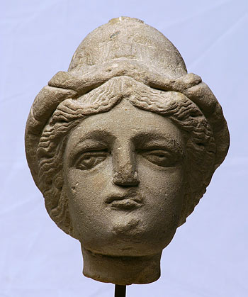 - Mythische Figur (Virtus ? Minerva ?) : Weiblicher Kopf mit kurzer Lockenfrisur mit Mittelscheitel. Der korinthische Helm ist in vereinfachter Form wiedergegeben. Wenn die Statuenbasis mit Inschrift R L 167 tatsächlich zugehörig ist, handelt es sich um die dort genannte Dea Virtus.