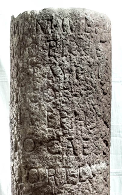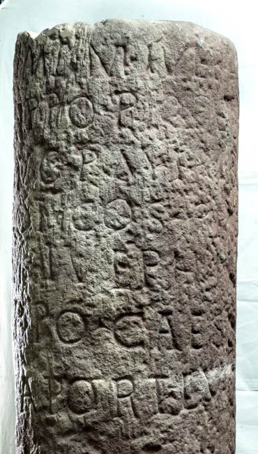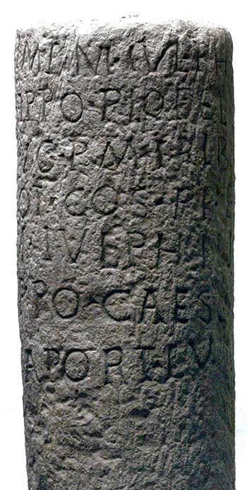 - Imp(eratori) M(arco) Iul(io) Ph/ilippo Pio Fel(ici) / Aug(usto) p(ontifici) m(aximo) trib(unicia) / pot(estate) co(n)s(uli) p(atri) p(atriae) et / M(arco) Iul(io) Phili/ppo Caes(ari) / a Port(u) l(eugae) V