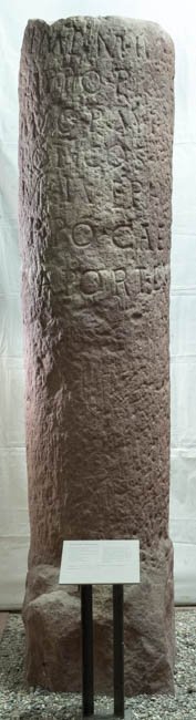 - Leicht ovale Säule mit roh zugeschlagenem viereckigen Sockel. Die Buchstaben sind wenig exakt gearbeitet, die Tiefe wechselt. Dadurch heben sich Teile der Inschrift von der nicht geglätteten Fläche nur undeutlich ab (Fundber. Schwaben NF 8, 101).
