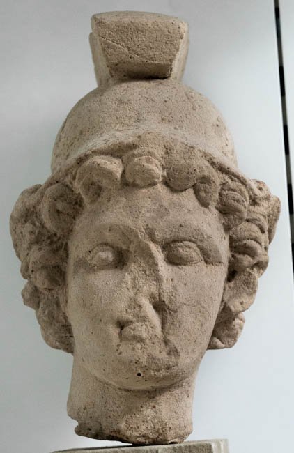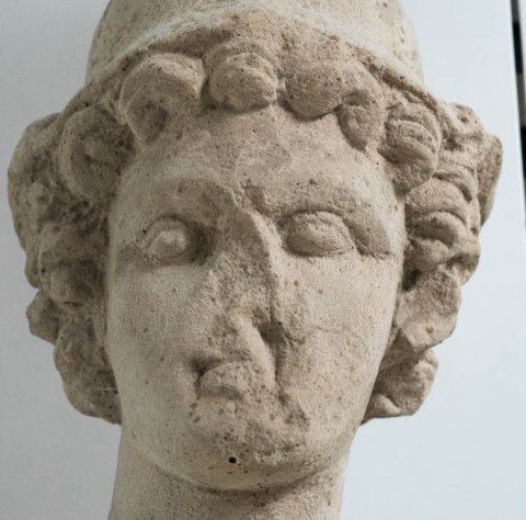 - Mythische Figur (Minerva) : Kopf mit gelocktem Haar und korinthischem Helm.