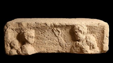 - Totenmahl, mythische Figur, Musikinstrument : Auf der Breitseite Totenmahl : rechts bärtiger Kopf des liegenden Mannes, links Kopf einer Frau und einer hinter ihr stehenden Dienerin (?). Auf den Schmalseiten links tanzender Satyr mit Schallbecken (Kymbala), rechts tanzende Mänade.