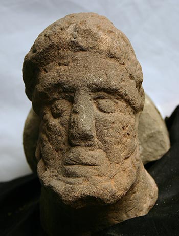 - Bärtiger Kopf (Jupiter ?). Der starke Schnurrbart ist eigentümlich zugeschnitten, an der Oberlippe ausgeschoren.