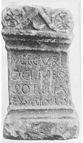 - Mercuri/o Cl(audia) Mes/sorina / ex voto l(ibens) l(aeta) s(olvit) m(erito)