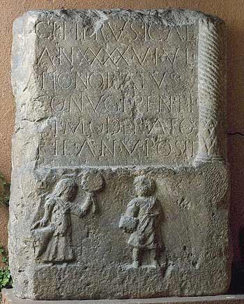 - ---]ci fil(iae) Rusticae / an(norum) XXXXV Iul(ius) / Honoratus / coniugi pienti(ssimae) / et Moderato / fil(io) an(norum) V pos(u)it