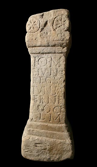 - I(ovi) O(ptimo) M(aximo) / et Iuno(ni) / Reg(inae) sac(rum) / Iun(ii) Pa/tern(us) et / Procl(us) / l(ibentes) l(aeti) m(erito)