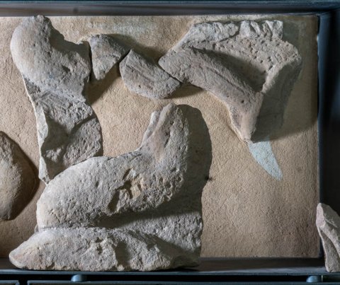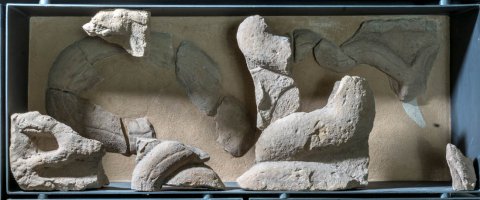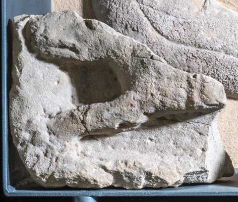 - Mythos (Odyssee): Skylla mit Hundeköpfen und tlw. rundplastisch ausgeführtem Schlangenleib, der aus dem Wasserbecken auftauchte.