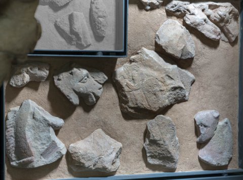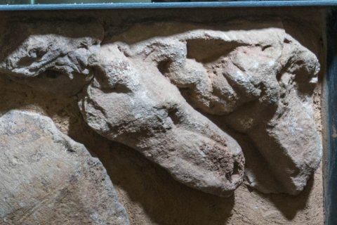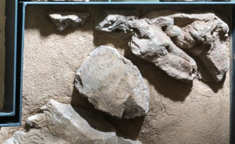 - Teile von vier (?) Pferdköpfen und -hälsen. Hippokampe ?