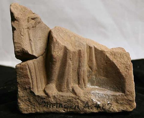 - Mythische Figur (Fortuna) : unterer Teil einer bekleideten Frau, die Rechte auf Steuerruder gelegt;