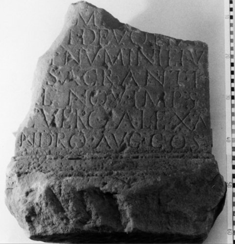 - --- ] / [Pro] sa[l]u[t(e)] Im[p(eratoris)] / [Sev]eri colle/[g]ium iuvent/[u]ti(s) devotissi/[m]i numini eiu/[s] sacrant K/al(endis) Nov(embribus) Imp(eratore) S/evero Alexa/ndro Aug(usto) co(n)s(ule)