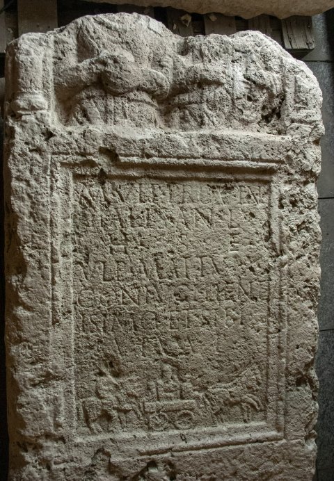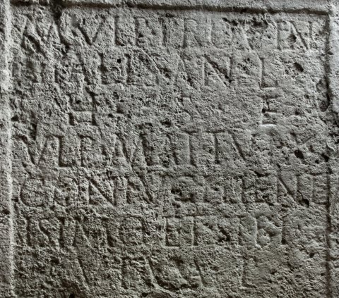 - M(arcus) Ulp(ius) Provin/cialis an(norum) L / h(ic) s(itus) e(st) / Ulpia Mattua / coniugi pient/is(s)imo et sibi / viva p(osuit)