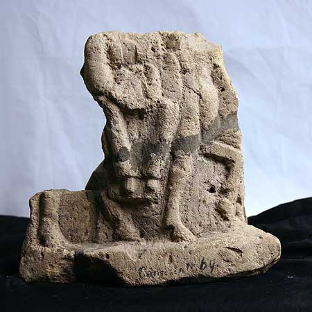 - Mythische Figur: nach rechts gehendes Pferd, auf dem Epona quer sitzt, Schale in den Händen.
